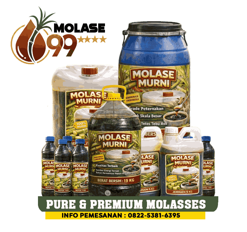 Anda mencari Supplier tetes tebu molase PG Sragi Pekalongan - Molase99 adalah nutrisi multifungsi yang efektif sebagai booster nafsu makan ternak, aktivator fermentasi pakan dan pupuk, serta penjaga kualitas air pada tambak/bioflok. Kaya akan energi alami, produk ini menjadi solusi hemat untuk meningkatkan produktivitas hasil peternakan, perikanan, hingga bahan baku industri secara optimal